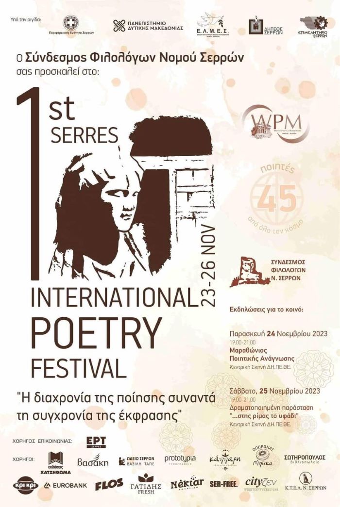 Τον Νοέμβριο (23&24) του 2023 συμμετείχα στο 1ο Διεθνές Φεστιβάλ Ποίησης Σερρών. Οι Σέρρες υποδέχτηκαν 40 ποιητές από όλη την Ελλάδα, καθώς και από το εξωτερικό.