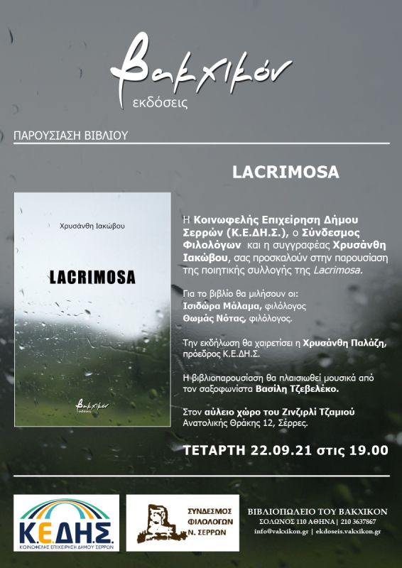 Παρουσίαση της ποιητικής μου συλλογής Lacrimosa στις Σέρρες