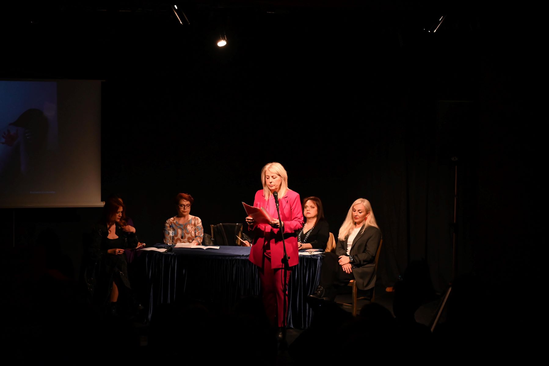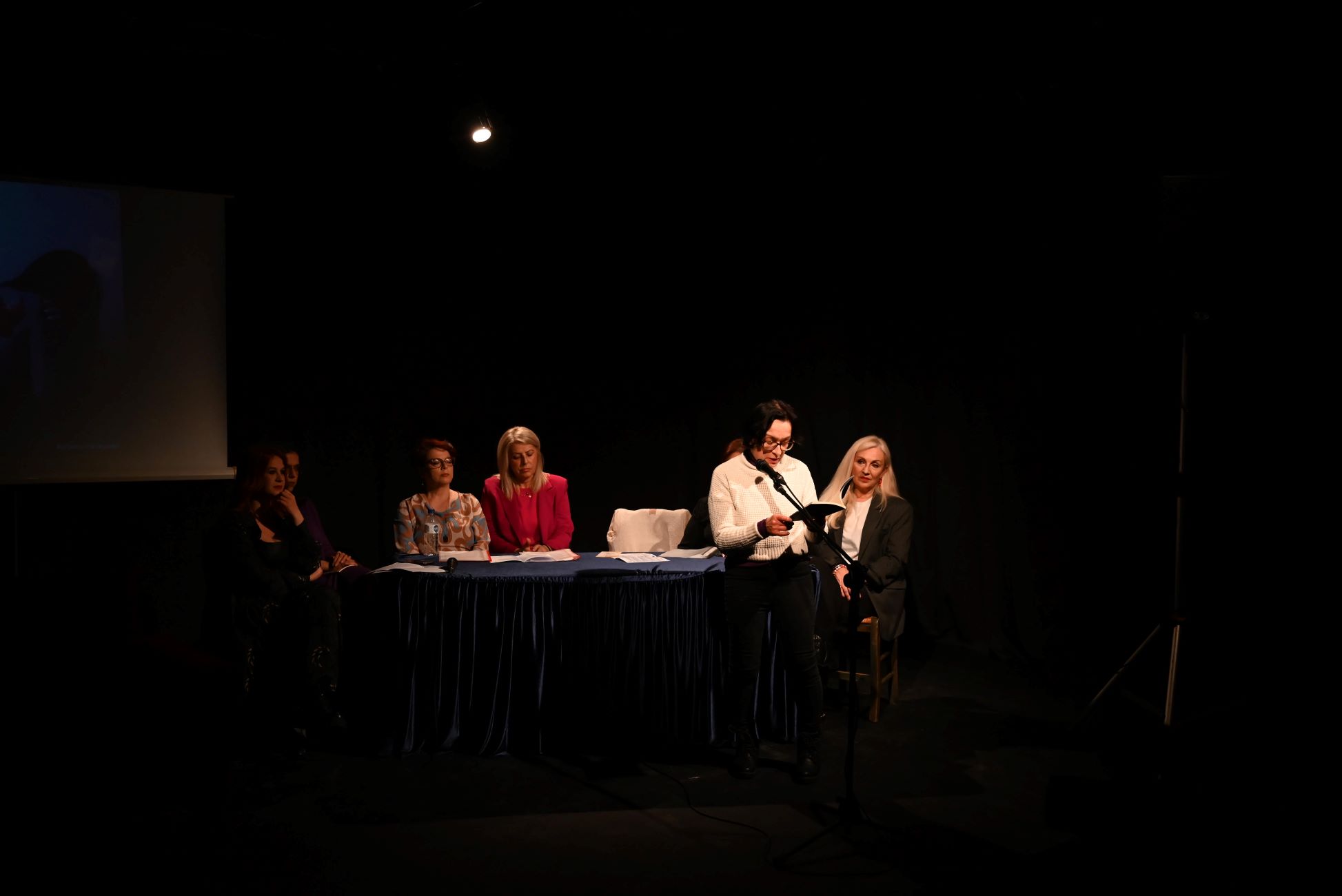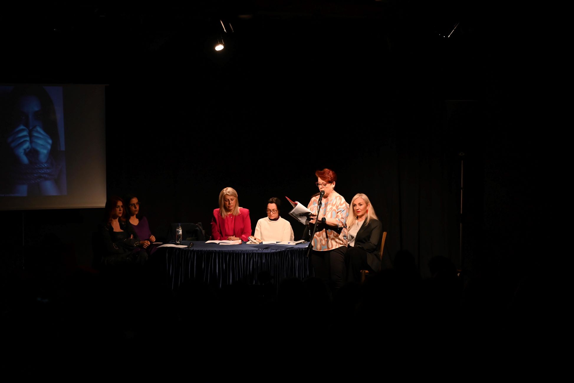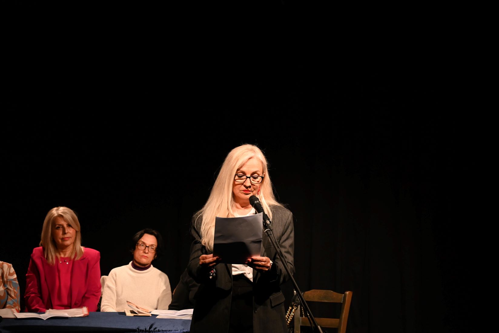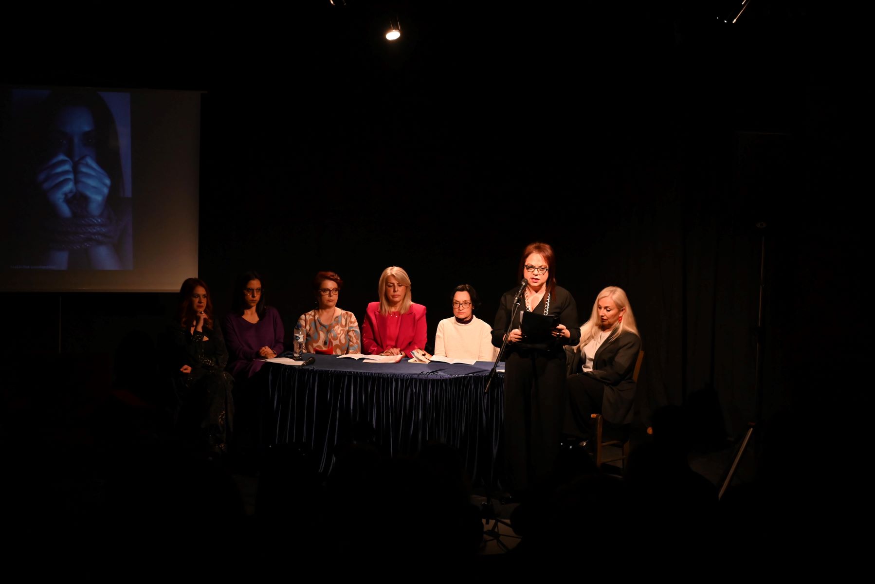 Στη σκηνή ανεβήκαμε οι Σερραίες συγγραφείς Χρυσάνθη Ιακώβου, Βίκυ Μπρούσαλη, Φανή Κεχαγιά, Διονυσία Ζήκα, Σύλβα Γάλβα, Μαρία Καραθανάση, Γεσθημανή Μπερμπέρη, που διαβάσαμε δικά μας ποιήματα και διηγήματα για την έμφυλη βία.