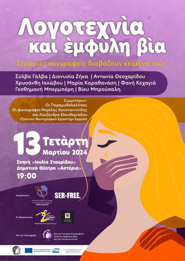 Η εκδήλωση έγινε την Τετάρτη 13 Μαρτίου στη σκηνή «Ιουλία Σταυρίδου» του ΔΗΠΕΘΕ Σερρών, με αφορμή την Παγκόσμια Ημέρα της Γυναίκας, και ήταν ένας συνδυασμός λογοτεχνίας, μουσικής και φωτογραφίας, σχετικές με το θέμα της έμφυλης βίας.