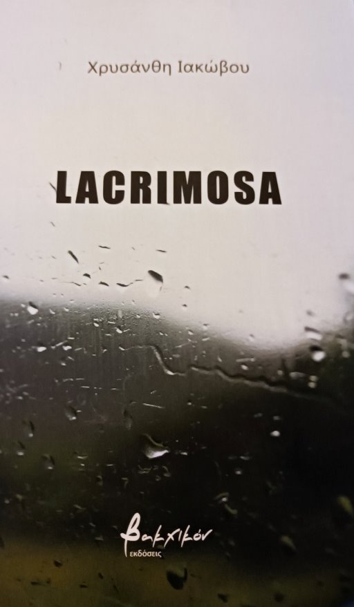 Η Χρυσάνθη Ιακώβου γράφει πάντα κάτω από το φως του καλοκαιριού. Πάντα! Τα αόρατα μόρια φωτός γεμίζουν κάθε πτυχή της ύπαρξης της και οι ανεξέλεγκτες ηλιακές πορείες ορίζουν το ποιητικό της είναι. Ο χρόνος στέκεται στην λίγο παραπάνω στην τελευταία γραμμή του ήλιου και ο χώρος μένει πάντα ανοιχτός, σαν μια αυλή που οδηγεί στις δικές της εποχές. Πάνω σε παιδικά γέλια σκάνε οι ήχοι της ζωής της, οι σταθερές αντανακλάσεις των ζωών της, των προηγούμενων και των επόμενων. Κι αν όλα μένουν γυμνά και διψασμένα, ξερά, η δροσιά των ταλαιπωρημένων σταγόνων ανακουφίζει και συνοδεύει τον ήχο του «Lacrimosa» (Εκδόσεις Βακχικόν).